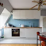 - ❓¿Hay una cocina disponible en este apartamento para uso de los huéspedes?Sí, este apartamento está equipado con una pequeña cocina y ofrece también un hervidor eléctrico, una cafetera/tetera y una nevera.